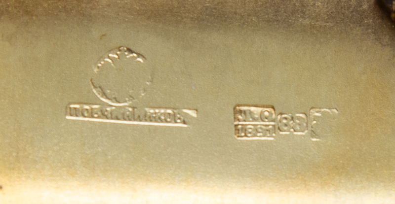 Mark of Pavel Ovchinnikov with Imperial Warrant, Assay of Lev Oleks, Moscow, 1891