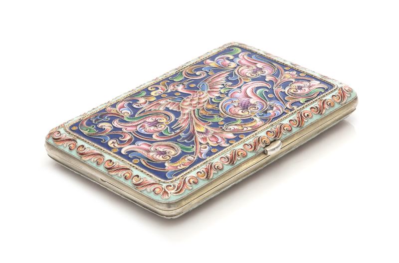 A Russian Enameled Silver Cigarette Case
