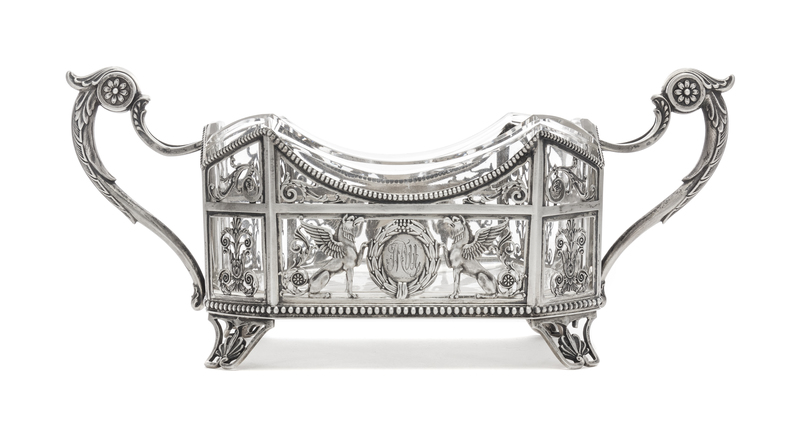 A Russian Silver Mounted Cut Glass Basket