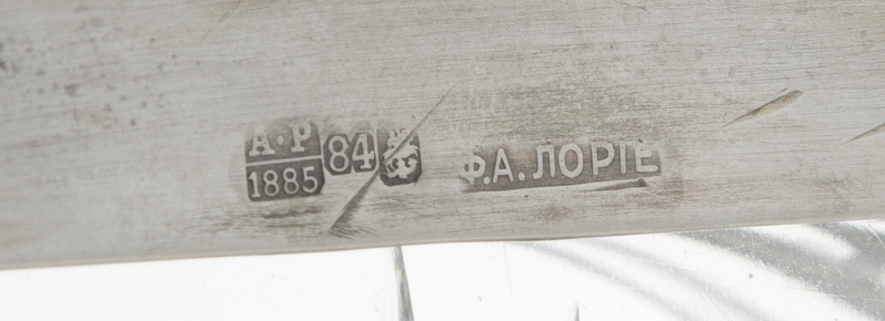 Mark of Fedor Lorie, Assay of A. Romanov, Moscow, 1885