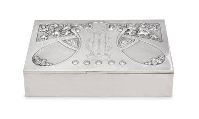 in the Art Nouveau taste, the lid centered by an engraved Cyrillic monogram.