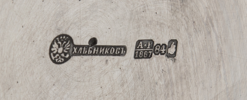 Mark of Ivan Khlebnikov with Imperial Warrant, Assay of A. Romanov, Moscow, 1887