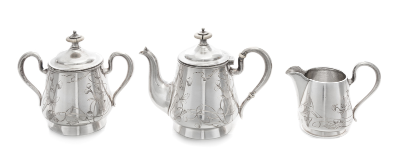 A Russian Silver Diminutive Three-Piece Tea Service