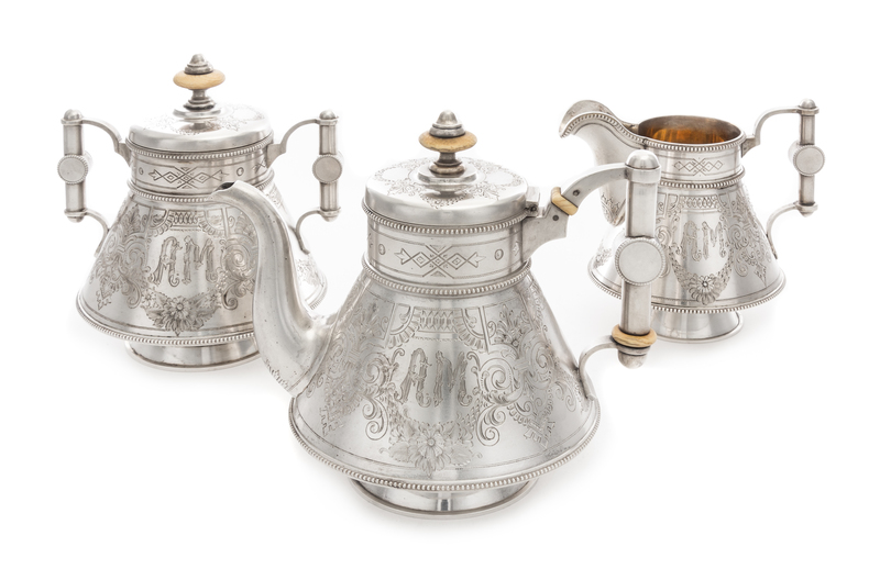 A Russian Silver Three-Piece Tea Service