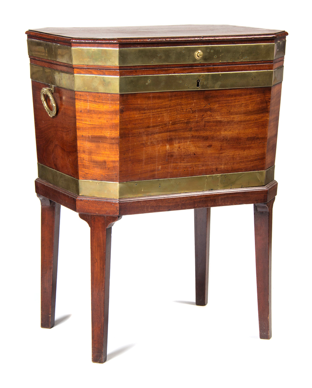 A George III Style Brass Banded Mahogany Cellarette