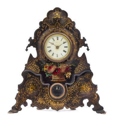 A Victorian Painted Tole Mantel Clock