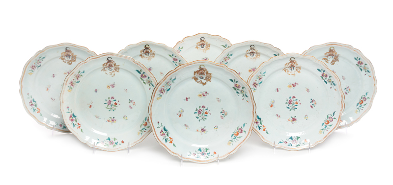 A Set of Eight Chinese Export Porcelain Armorial Plates