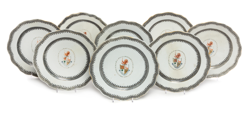 A Set of Eight Chinese Export Porcelain Armorial Plates