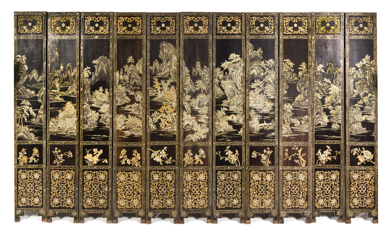 A Chinese Lacquered Twelve-Panel Floor Screen