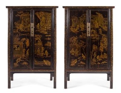 A Pair of Chinese Export Lacquered Cabinets