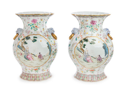 A Pair of Chinese Export Famille Rose Porcelain Vases