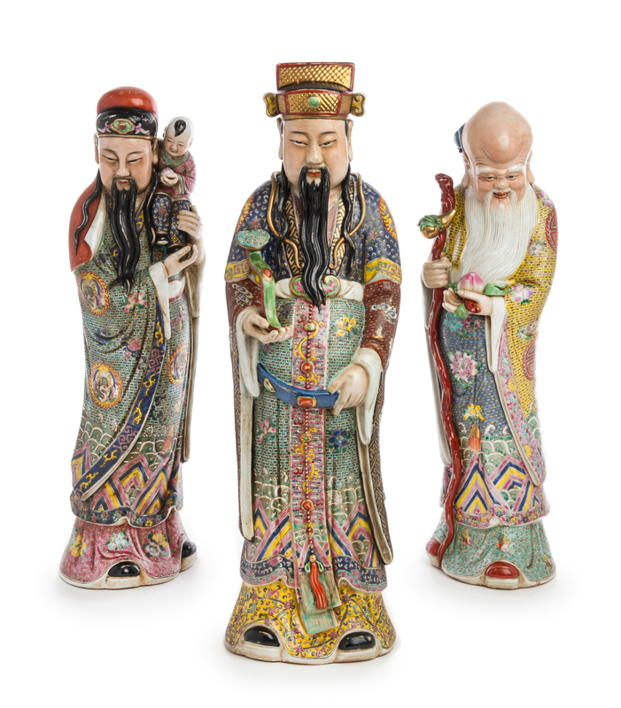 A Set of Three Chinese Famille Rose Porcelain Figures