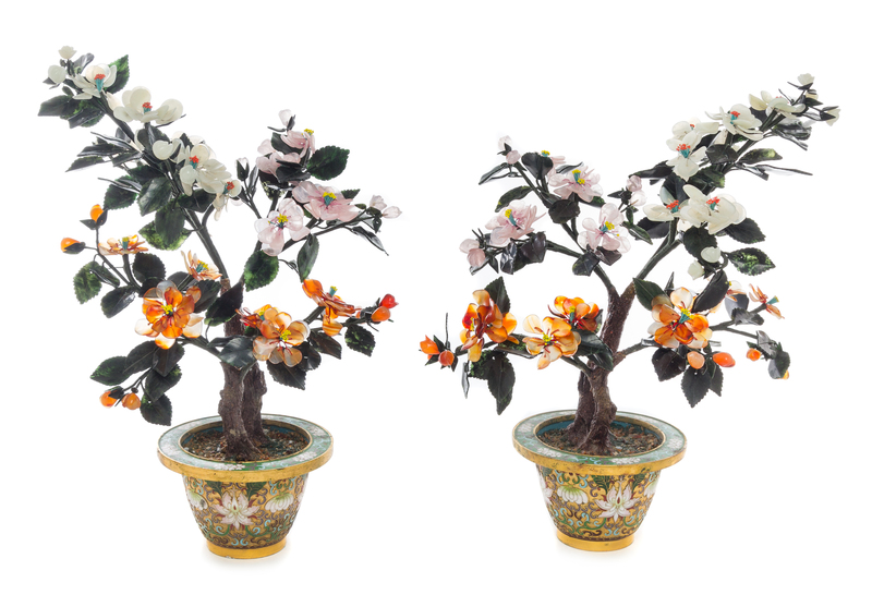 A Pair of Chinese Carved Hardstone Floral Arrangements