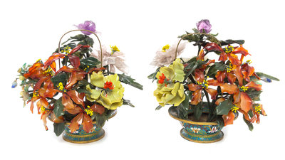 A Pair of Chinese Hardstone Floral Arrangements