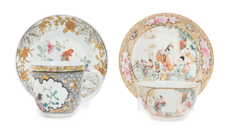 Two Sets of Chinese Export Famille Rose Porcelain Cups and Saucers