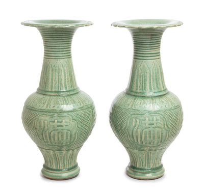 A Pair of Chinese Celadon Glazed Porcelain Vases