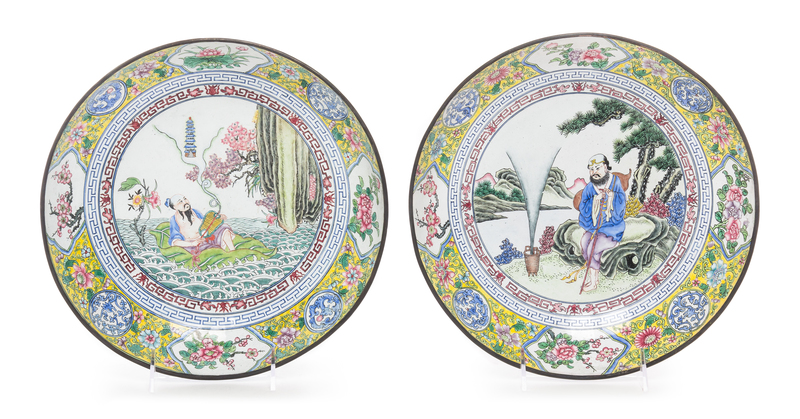 A Pair of Chinese Export Enamel on Copper Shallow Bowls