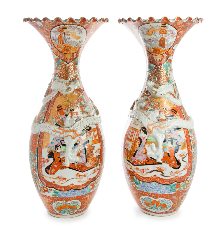 A Pair of Japanese Kutani Porcelain Vases