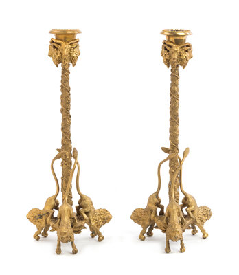 A Pair of Continental Gilt Bronze Candlesticks