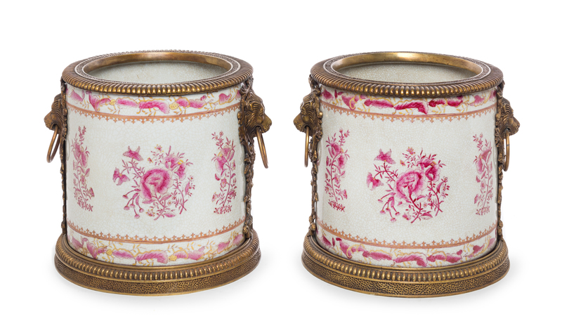 A Pair of Gilt Bronze Mounted Porcelain Jardinieres