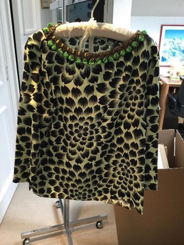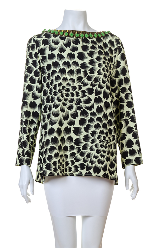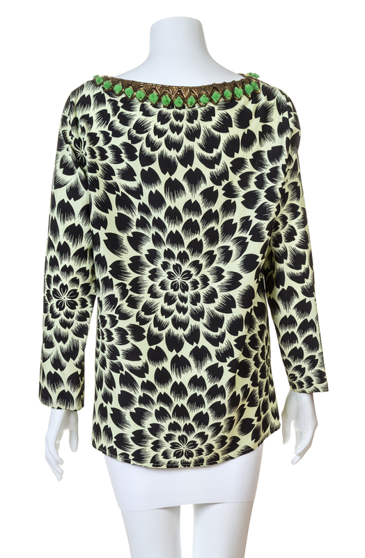 with a round and embellished neckline and side vents.Labeled: Etro.