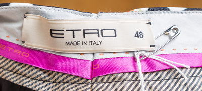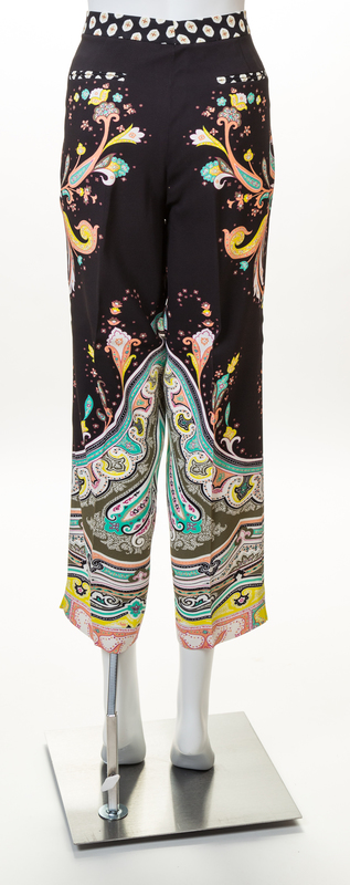 with side slip pockets, a front zip closure and jetted faux back pockets.Labeled: Etro.