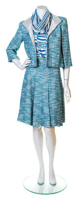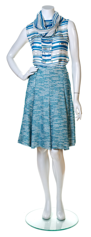 A Chanel Blue and Silver Boucle Skirt Ensemble,