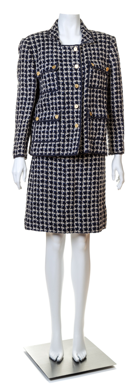 A Chanel Navy and White Boucle Skirt Ensemble,