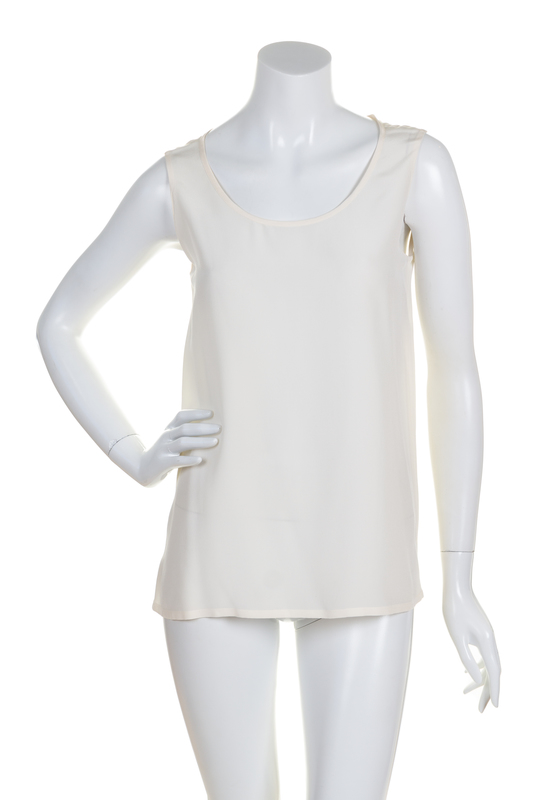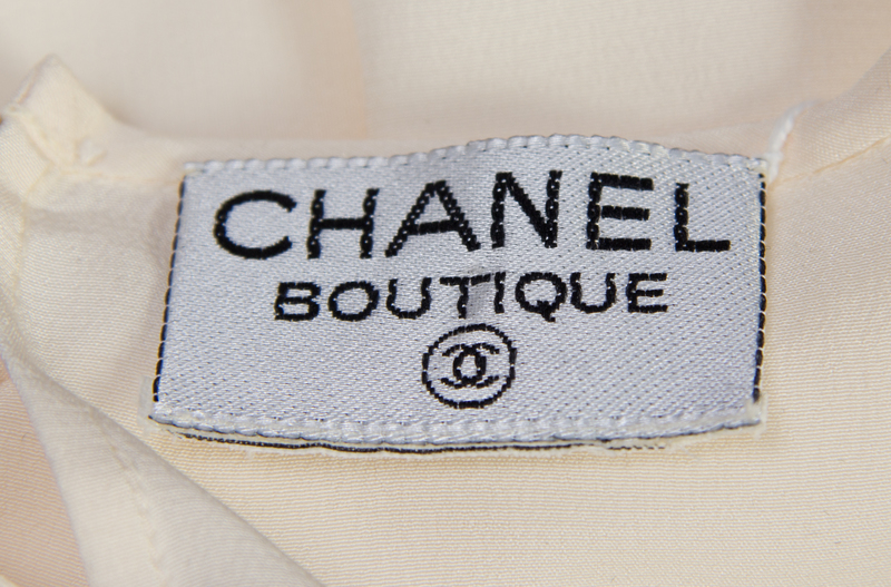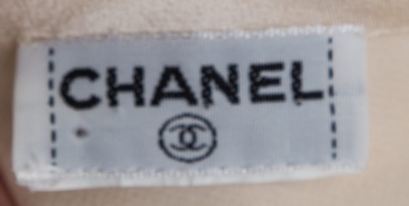 Cruise 1999,comprised of a pant with a front zip closure and slip pockets; together with a pair of cream silk tank tops each with a decorative back single button closure.Each labeled: Chanel.