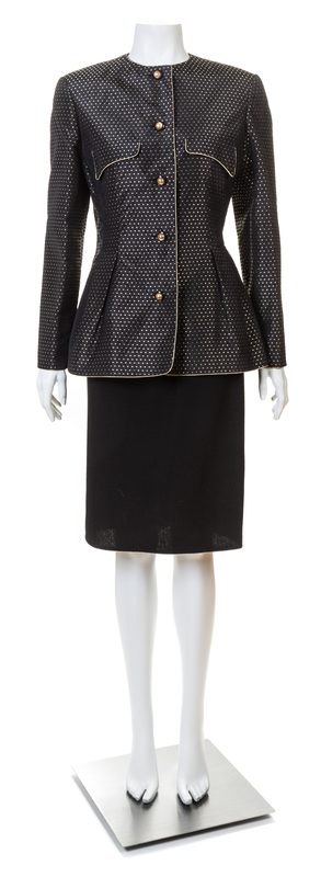 A Geoffrey Beene Black and Gold Jacket and Skirt Ensemble,