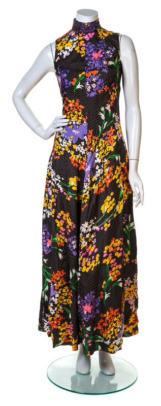 A Geoffrey Beene Black and Multicolor Floral Print Dress,