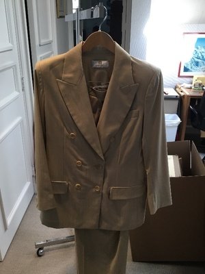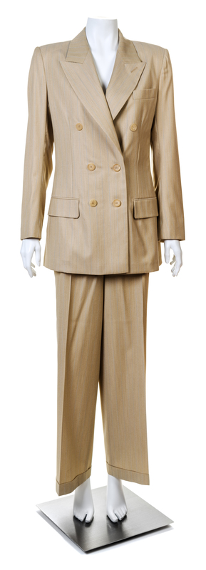 A Givenchy Tan Wool Pinstripe Pant Suit,