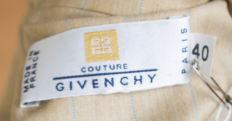 1990s,comprised of a double breasted jacket with a notched collar, a welted chest pocket and faux flap pockets; together with a matching cuffed pant with side slip pockets and a front zip closure.Each labeled: Givenchy Couture.