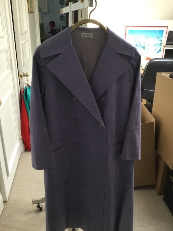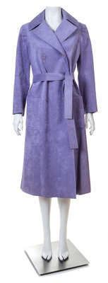 A Halston Lavender Ultra Suede Double Breasted Coat,