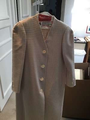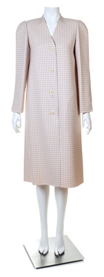 A Halston Lavender and Cream Wool Check Coat,