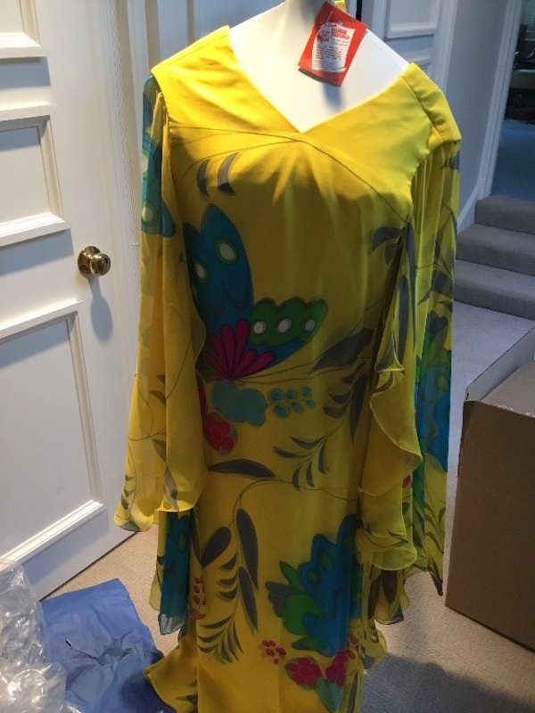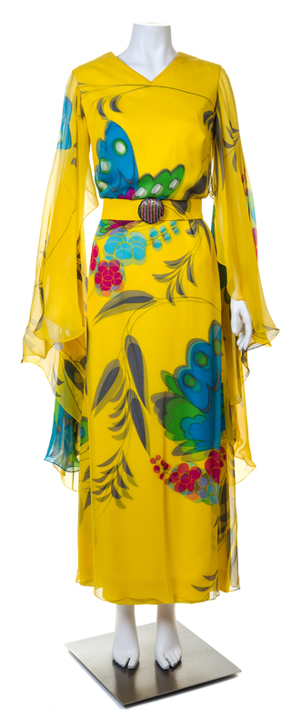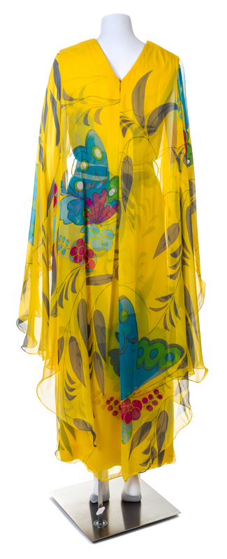 A Hanae Mori Yellow Silk Chiffon Caftan Dress,