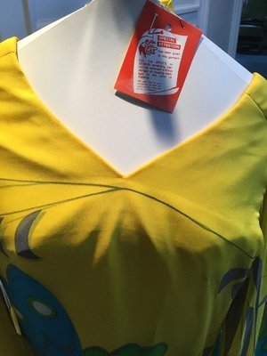 angel wing sleeves, a V-neckline with floral, butterfly print on both dress and the sheer chiffon overlay, a back zip closure and a detachable matching belt with a multicolor bead buckle.Labeled: Hanae Mori.