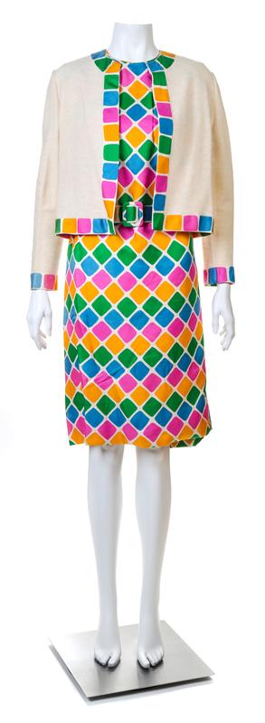 A Kaplan Couture Multicolor Block Design Dress and Sweater Set,