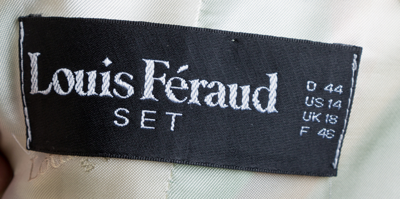 with a notched lapel, jetted faux pockets and a four button front closure.Labeled: Louis Feraud.