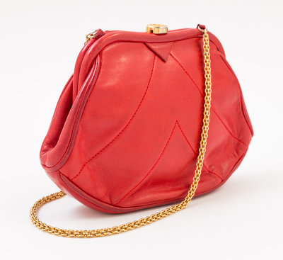 A Chanel Red Lambskin Vintage Chevron Handbag,
