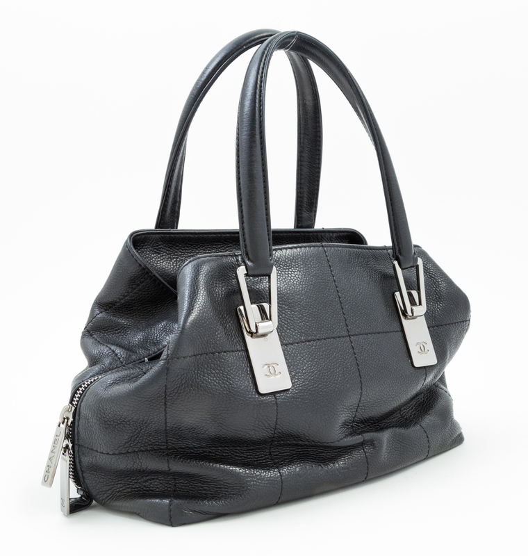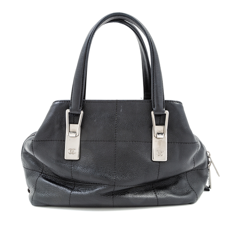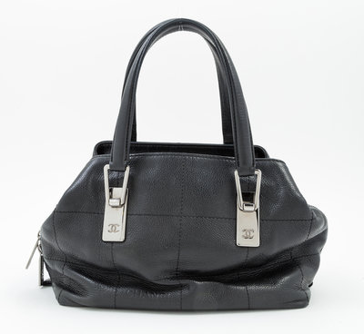 2003-2004,with dual top handles, decorative silvertone logo hardware, an exposed double zip closure, foldover center magnetic compartments and one interior zip pocket. Together with a dustbag.Stamped: Chanel.