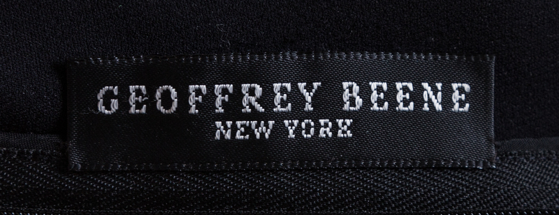 sleeveless with a fitted bodice, decorative blue rhinestone buttons and a back zip closure.Labeled: Geoffrey Beene.