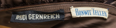 long sleeved with a zipper cuff, a round neckline and a back zip closure.Labeled: Rudi Gernreich.