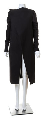 A Rick Owens Black Wool Asymmetrical Wrap Coat,