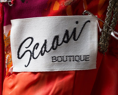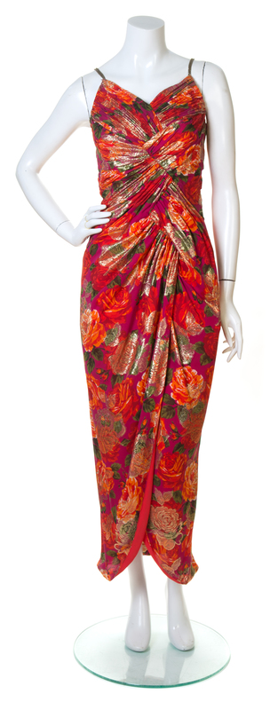 A Scaasi Multicolor Silk Floral Sleeveless Gown,
