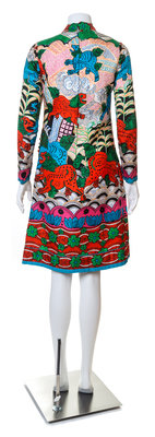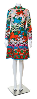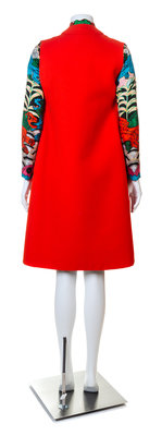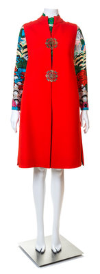 A Tina Leser Multicolor Silk Dress and Red Wool Vest,