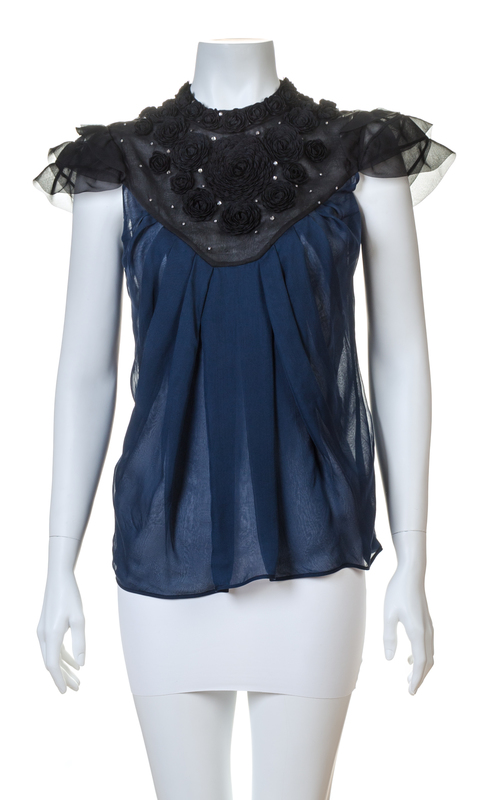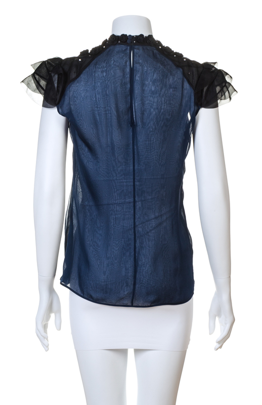 A Valentino Black and Navy Silk Sheer Blouse,