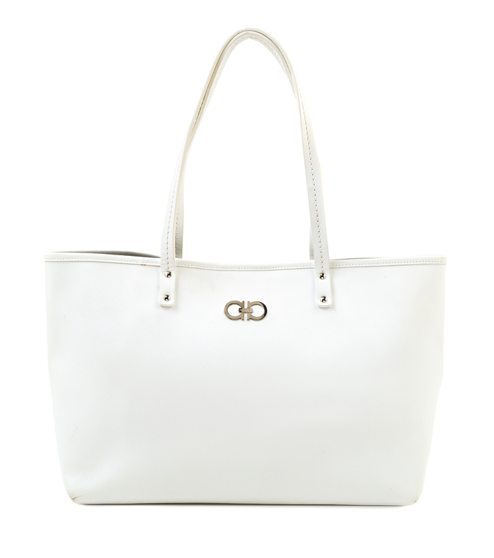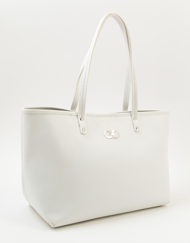 A Salvatore Ferragamo White Leather Tote Bag,