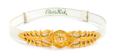 with an adjustable slide design and a goldtone buckle with a hook closure. Together with a dust bag.Stamped: Alexis Kirk.
