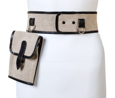 with black leather trim, silvertone hardware, a two snap front closure and a detachable flap pouch.Stamped: Miss Dior.